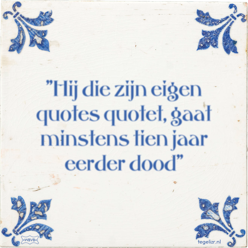 "Hij die zijn eigen quotes quotet, gaat minstens tien jaar eerder dood" 15 keer bekeken Hoeveel sterren is dit tegeltje waard? 54321 geef sterren Leuk? Of kun jij het beter? Maak je eigen tegeltje. Jouw tekst: Alleen letters, cijfers en leestekens. Maximale lengte 90 tekens bak mijn tegeltje Recente tegeltjes 1 tot 12 Eindelijk weer terug."Hij die zijn eigen quotes quotet, gaat minstens tien jaar eerder dood" -Ferran 2026Feesten zonder alcohol is als lopen zonder loopschoenen: het is verdomme makkelijker mét!De beste PDF is geen PDFJe kan ook lopen zonder loopschoenen, maar het is verdomme makkelijker metAlles met genietjes aan elkaar nieten"Een bestuur dat luistert naar zijn wortels, groeit tot in de hemel."Je wilt hier niet alles willen begrijpenVerlies nooit uit het oog voor wie de tafel eigenlijk gedekt is.Wie de regels van het spel kent, durft de grenzen van het veld te benutten.Ervaring uit een andere stal geeft vaak de beste mest voor eigen groeiOnze variatie is onze kracht, onze zelfde missie onze macht.volgende 12 tegels›Bovenkant Bak een tegeltje! Bak een tegeltje! Jouw tekst: Alleen letters, cijfers en leestekens. Maximale lengte 90 tekens bak mijn tegeltje ×