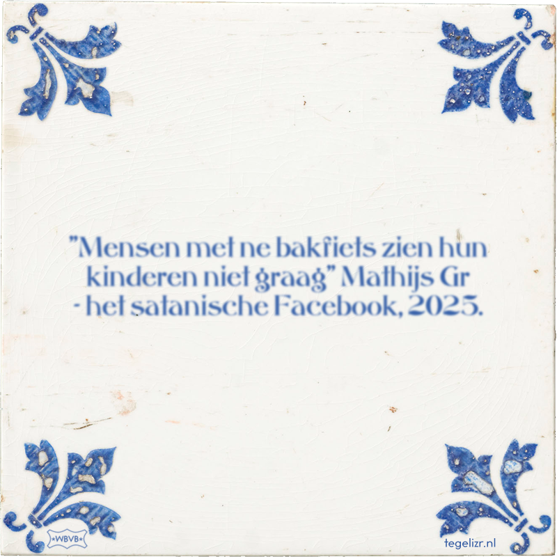 "Mensen met ne bakfiets zien hun kinderen niet graag" Mathijs Gr - het satanische Facebook➮"Mensen met ne bakfiets zien hun kinderen niet graag" Mathijs Gr -, , 2025.De hedendaagse plato➭ 376 keer bekeken Hoeveel sterren is dit tegeltje waard? 54321 geef sterren Leuk? Of kun jij het beter? Maak je eigen tegeltje. Jouw tekst: Alleen letters, cijfers en leestekens. Maximale lengte 90 tekens bak mijn tegeltje Recente tegeltjes 1 tot 12 Elke malloot kan iets op een tegeltje zetten, dat maakt het nog geen wijsheidGoed eten kent geen adresJe kan allerlei willekeurige dingen op een tegel zetten en het ziet er toch wel leuk uitNa elf uur geen schaken. Na elf uur geen instagram.door een vakjury is gekozen de mooiste Man van 2025 ??????Wat heb jij nodig?Nostalgia is not a strategyHou het kort!!Rotterdam is de 1 tussen de nullenVoor mijn bestieAlles komt altijd goed!Altijd eerst vissen waar de meeste vissen zwemmenvolgende 12 tegels›Bovenkant Bak een tegeltje! Bak een tegeltje! Jouw tekst: Alleen letters, cijfers en leestekens. Maximale lengte 90 tekens bak mijn tegeltje ×